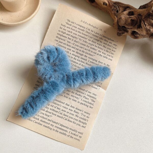 Jepit Rambut Bulu Wanita Elegan Dengan Bahan Wol Gaya Aksesoris Korea – biru
