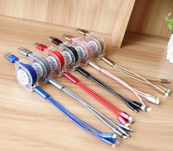 Kabel Roll 3 in 1 Tarik 2.4A Otomatis Fast Charging – Abu