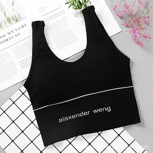 Bra Sport Wanita Tanpa Kawat Model Seamless B400 dengan Isi Busa – Hitam Ada Tulisan
