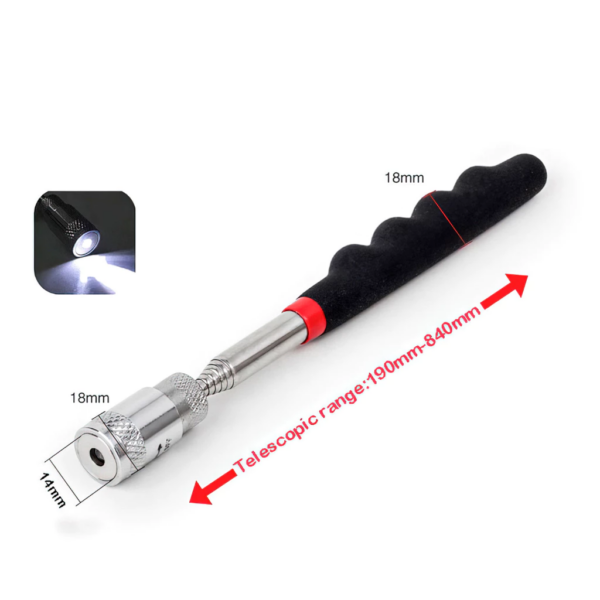 Stik Magnet Teleskopik dengan Lampu LED Tongkat Penarik Logam Panjang