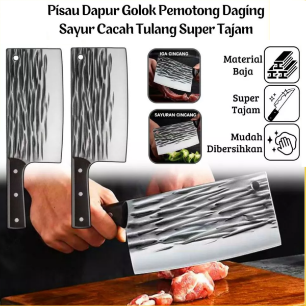 Pisau Dapur Pemotong Daging Sayur Buah Koki Chef Knife Baja Stainless – Persegi