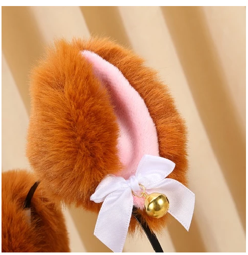 Tampil lebih menggemaskan dengan Bando Telinga Kucing yang dihiasi bulu lembut, lonceng kecil, dan pita cantik.
