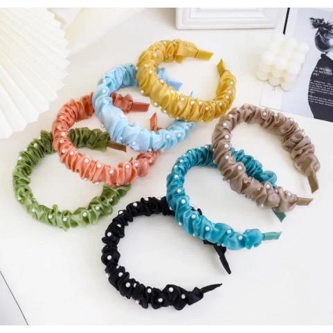 Bando Headband Wanita Mutiara Kerut Satin hadir dengan desain elegan dan mewah, cocok untuk melengkapi gaya fashion Korean style.