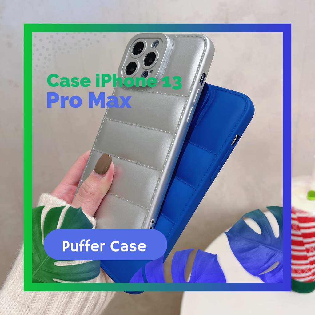 Puffer case iPhone 13 ProMax winter edition dengan material luar kain seperti pada jaket atau pakaian pada musim dingin.