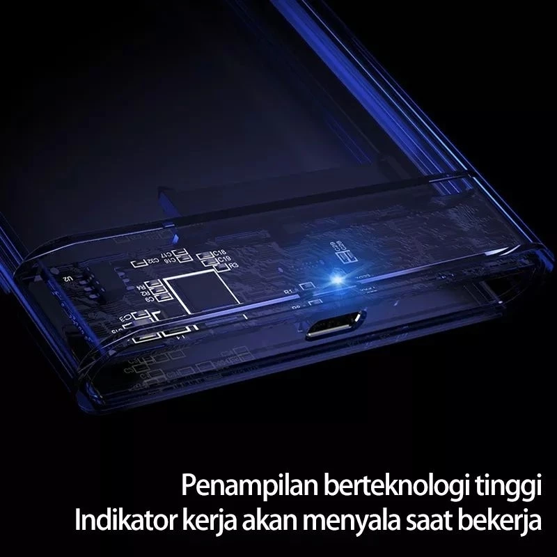 Casing hardisk eksternal 2.5 inch SATA dengan desain elegan dan bodi aluminium yang kokoh serta ringan.
