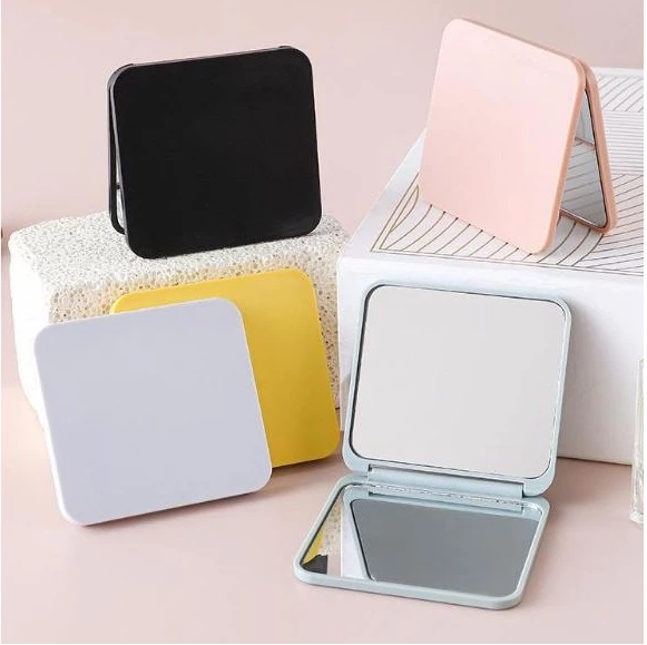 Cermin Lipat 2 Sisi Persegi Kaca Make Up Polos Mini Mirror Decor Sticker adalah cermin portabel yang praktis dan ringkas, ideal untuk keperluan make-up atau kebutuhan kecantikan lainnya.