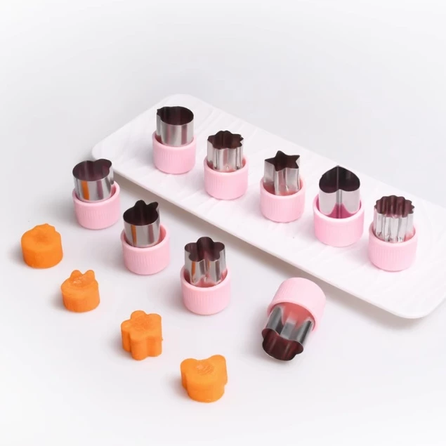 Cetakan pemotong sayuran dan buah berbahan stainless steel dengan berbagai bentuk lucu seperti bintang, hati, dan bunga.