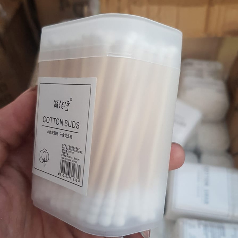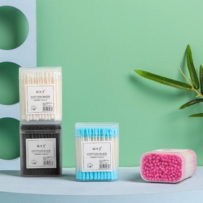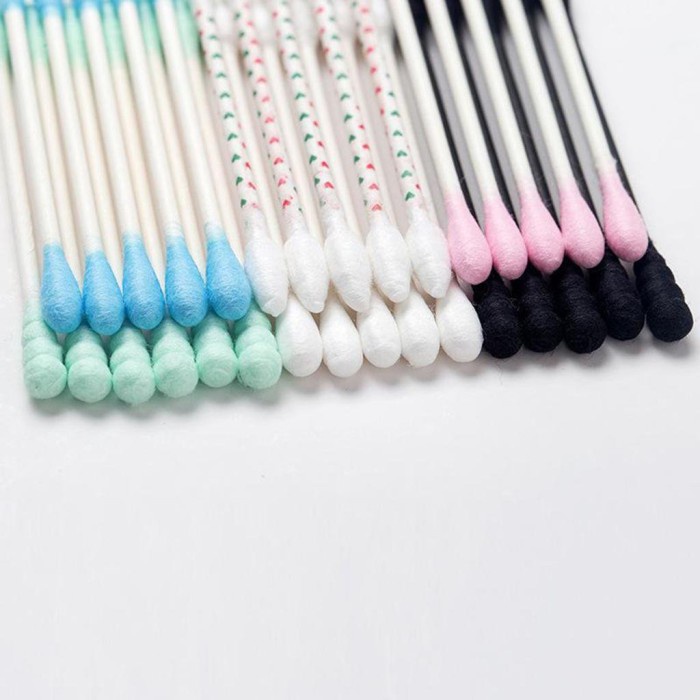 Korek Kuping Cotton Bud Kayu 2 Sisi Kapas Warna Warni 100 Pcs – Bambu