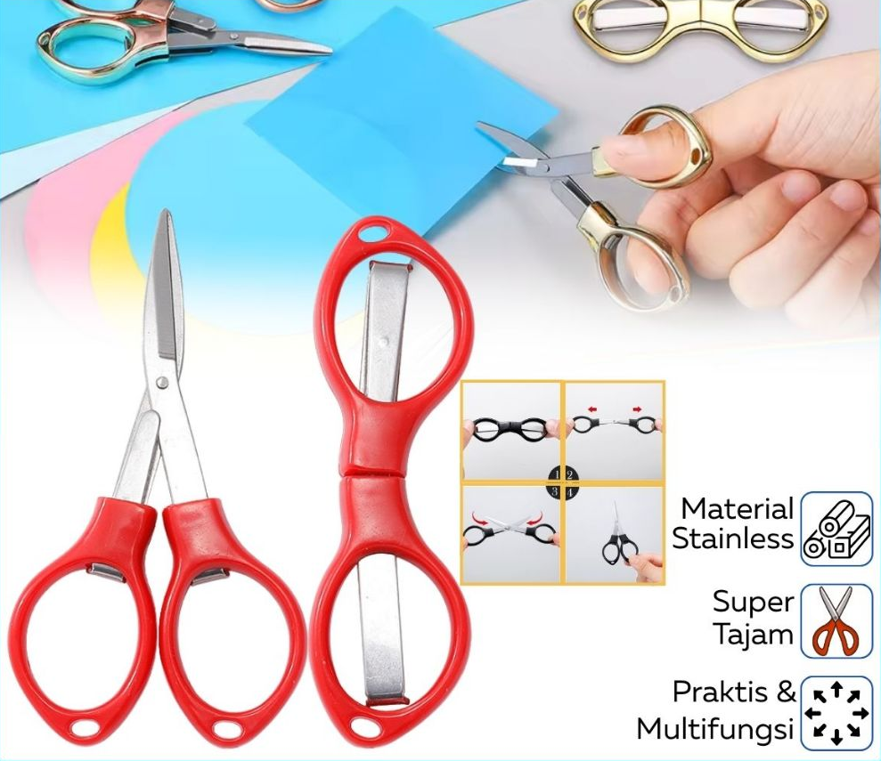Gunting lipat mini model kacamata ini hadir dengan desain unik, ringkas, dan praktis untuk dibawa ke mana saja. Terbuat dari bahan stainless steel anti karat, gunting ini kuat, tajam, dan tahan lama. Saat dilipat, bentuknya menyerupai kacamata mungil sehingga mudah disimpan dalam saku, pouch, dompet, atau kotak jahit. Ideal digunakan untuk kebutuhan menjahit, crafting, DIY, hingga keperluan darurat saat bepergian.