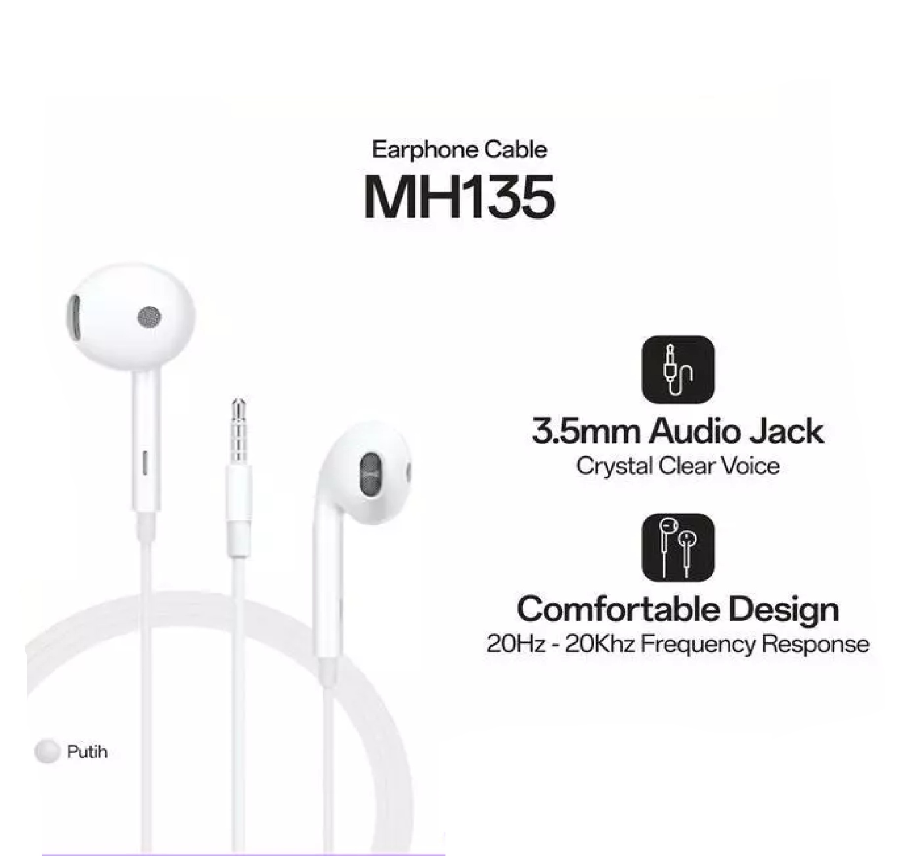 Headset Earphone Kabel MH135 dirancang untuk memberikan pengalaman mendengarkan musik yang jernih dan nyaman.