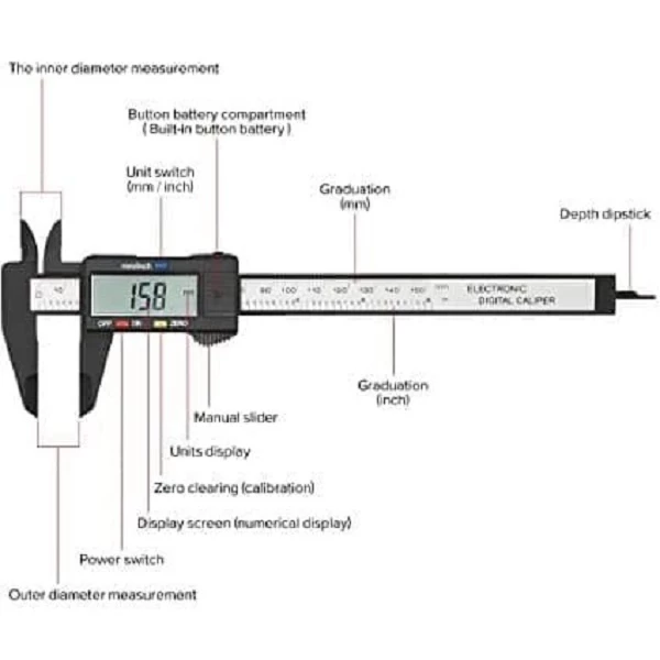 – Dapat mengukur panjang, diameter luar, diameter dalam, dan kedalaman