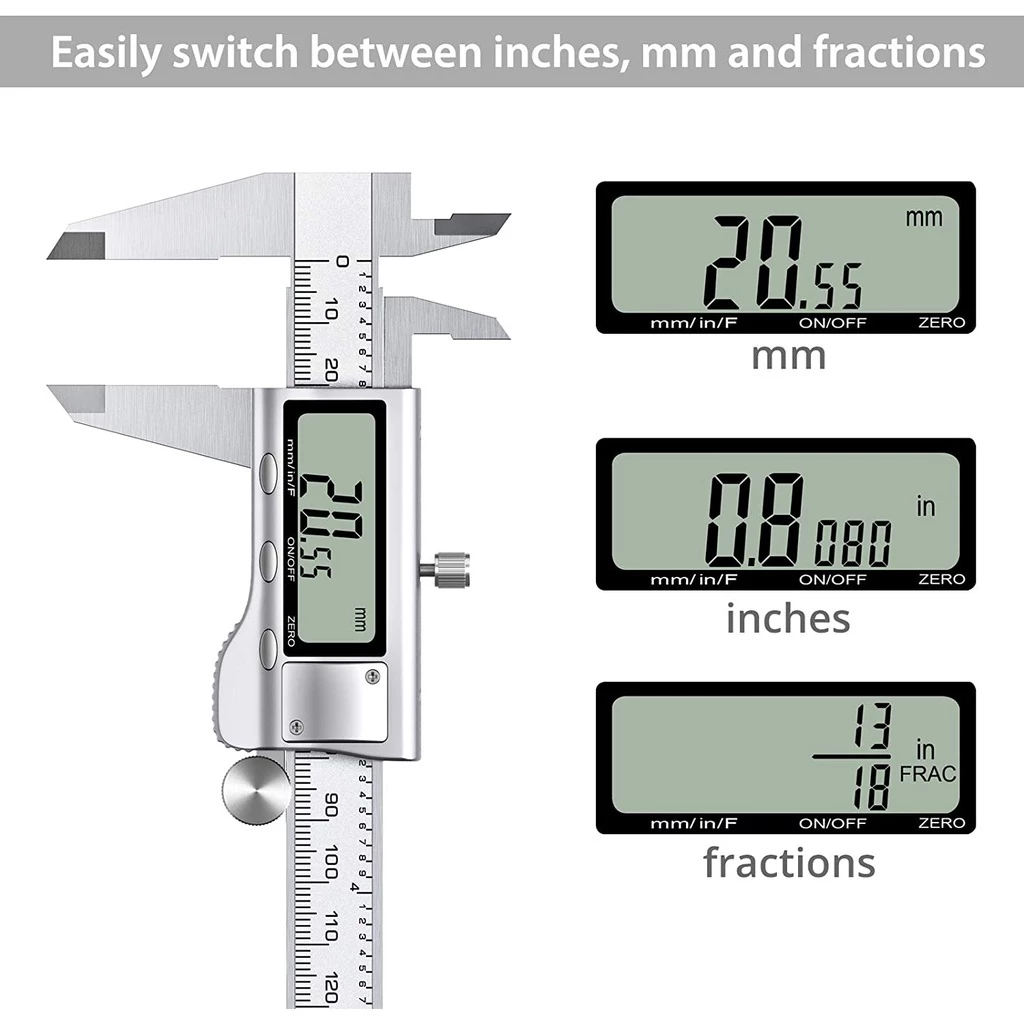 – Tombol ON/OFF, ZERO, dan unit konversi (mm/inch)