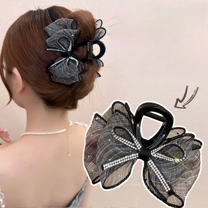 Jepit Rambut Pita Model Korea Dengan Model Berlian Cantik – Hitam