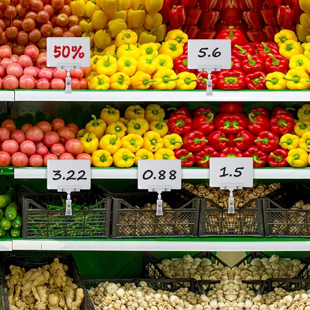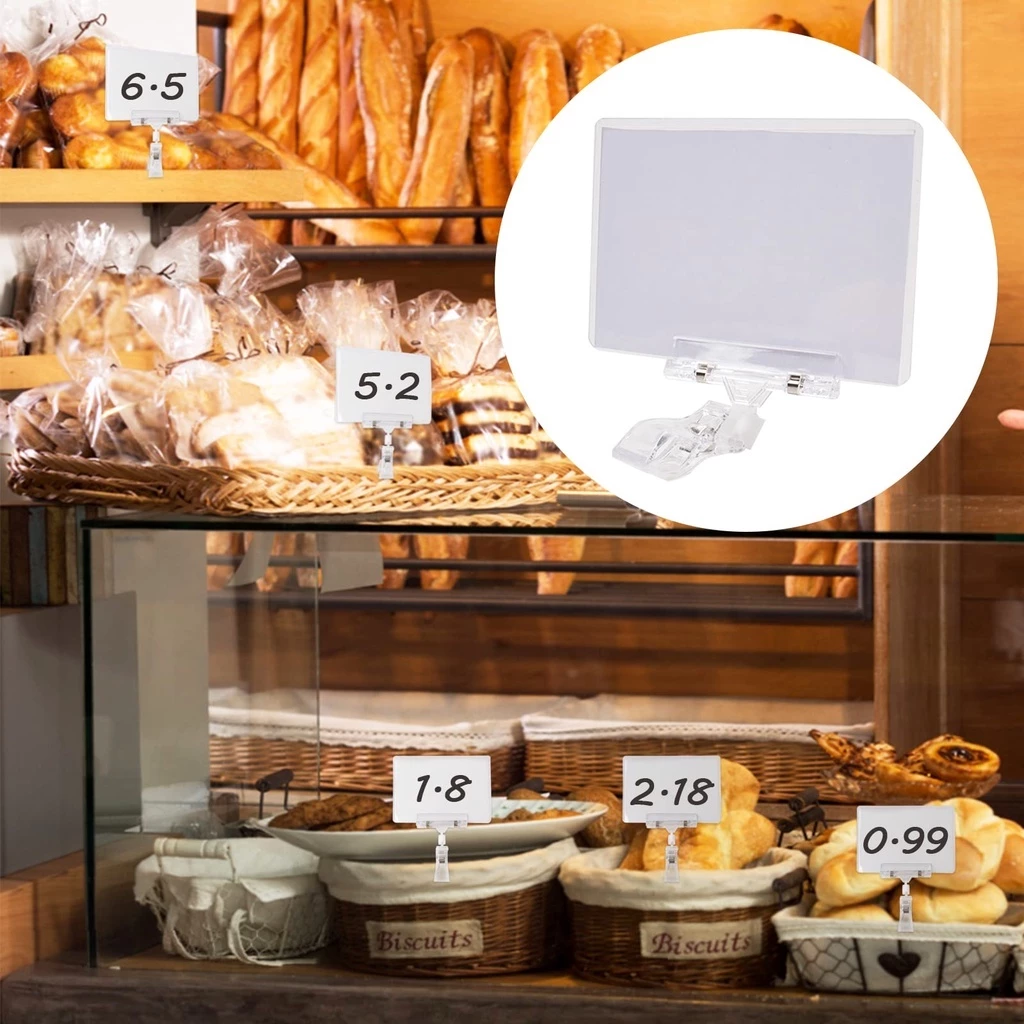 Jepitkan label harga atau papan obral pada penjepit akrilik.