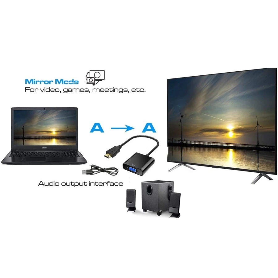 Kabel Converter HDMI to VGA dan VGA to HDMI dengan audio ini berfungsi untuk menghubungkan perangkat dengan port HDMI (laptop, PC, PS, DVD) ke perangkat dengan port VGA (monitor, TV, proyektor) maupun sebaliknya.