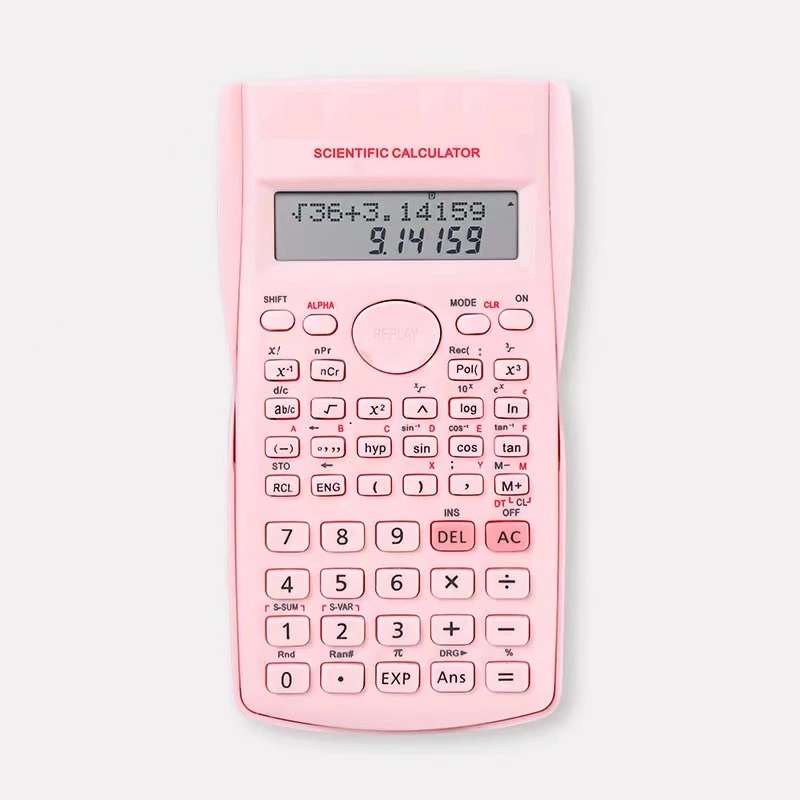 Kalkulator Ilmiah SinCosTan 240 Fungsi Layar LCD HD Baterai L1131 – Pink