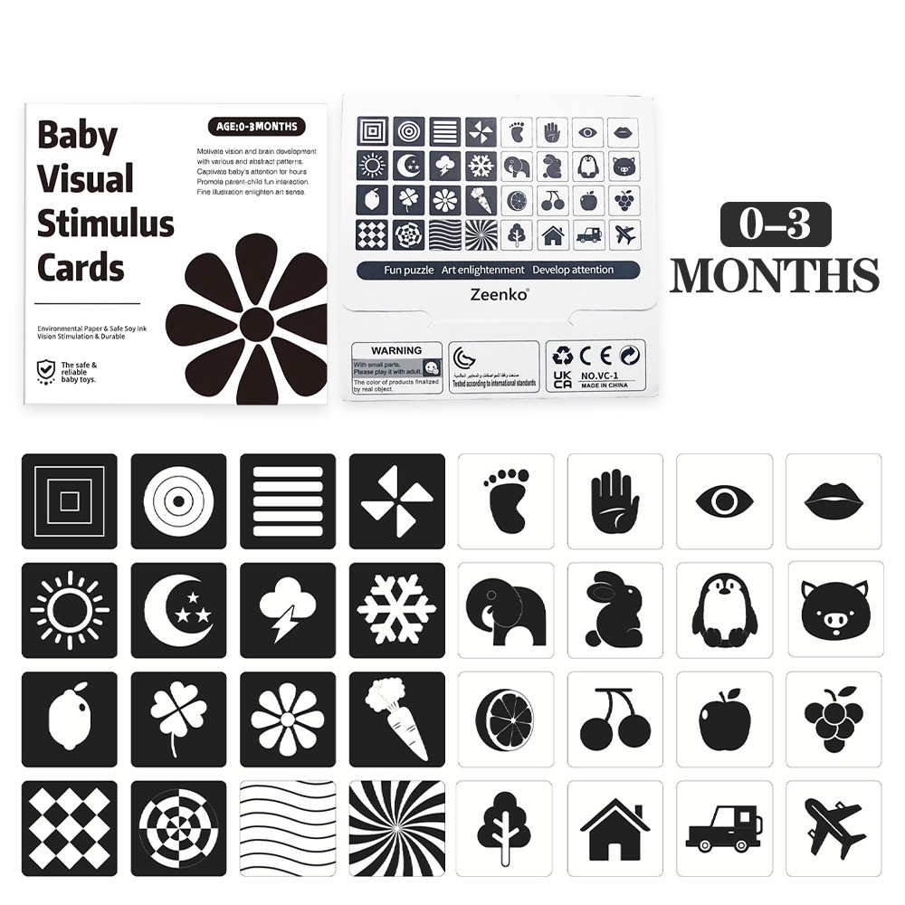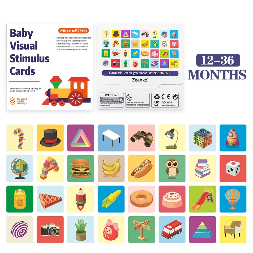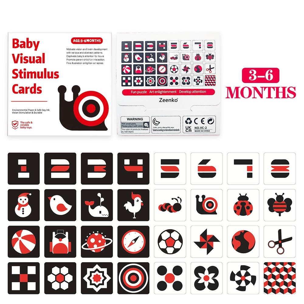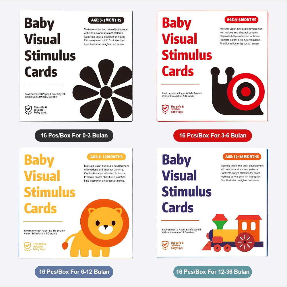 Visual Cards adalah kartu edukasi bayi yang dirancang untuk mengenalkan bentuk, buah, hewan, dan lain-lain. Setiap kartu memiliki pola kognitif sederhana dengan kontras tinggi dan warna-warna cerah yang menarik perhatian bayi dengan mudah. Dikemas dalam kotak hadiah yang indah, ini adalah hadiah sempurna untuk bayi baru lahir hingga usia 36 bulan.