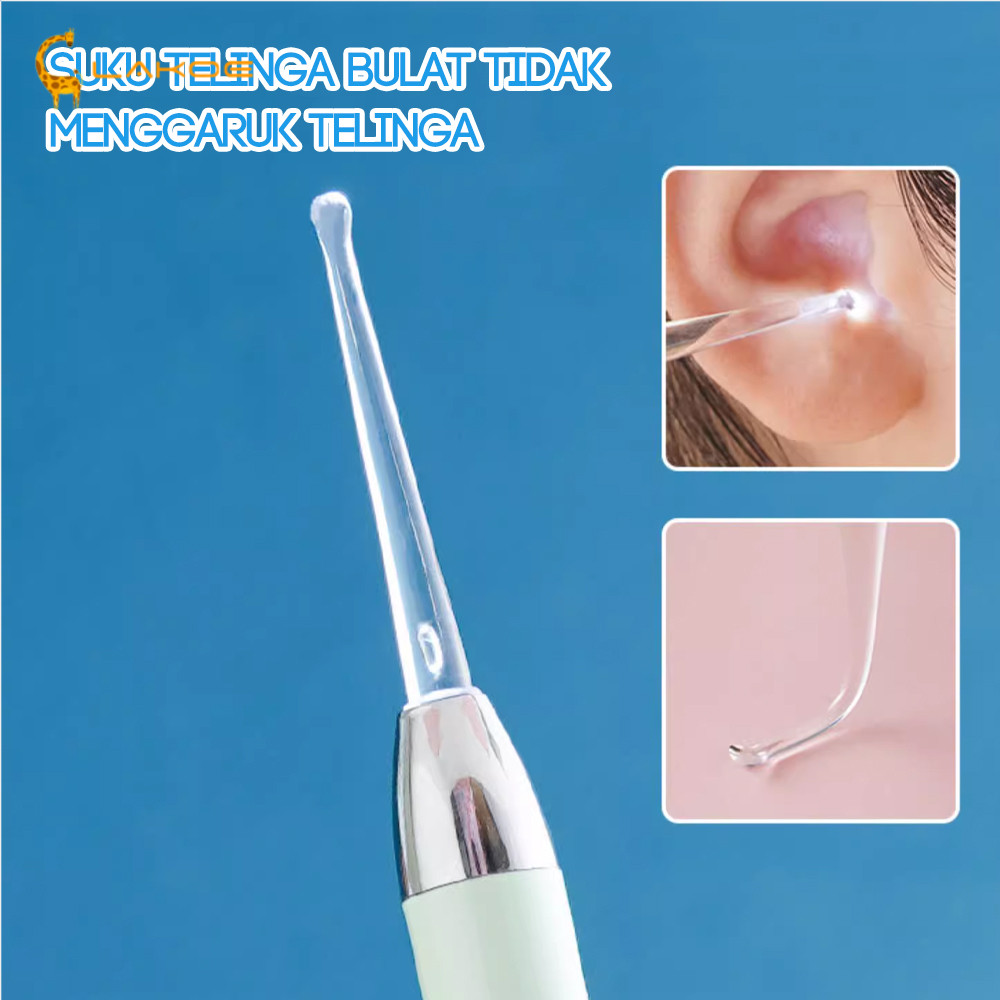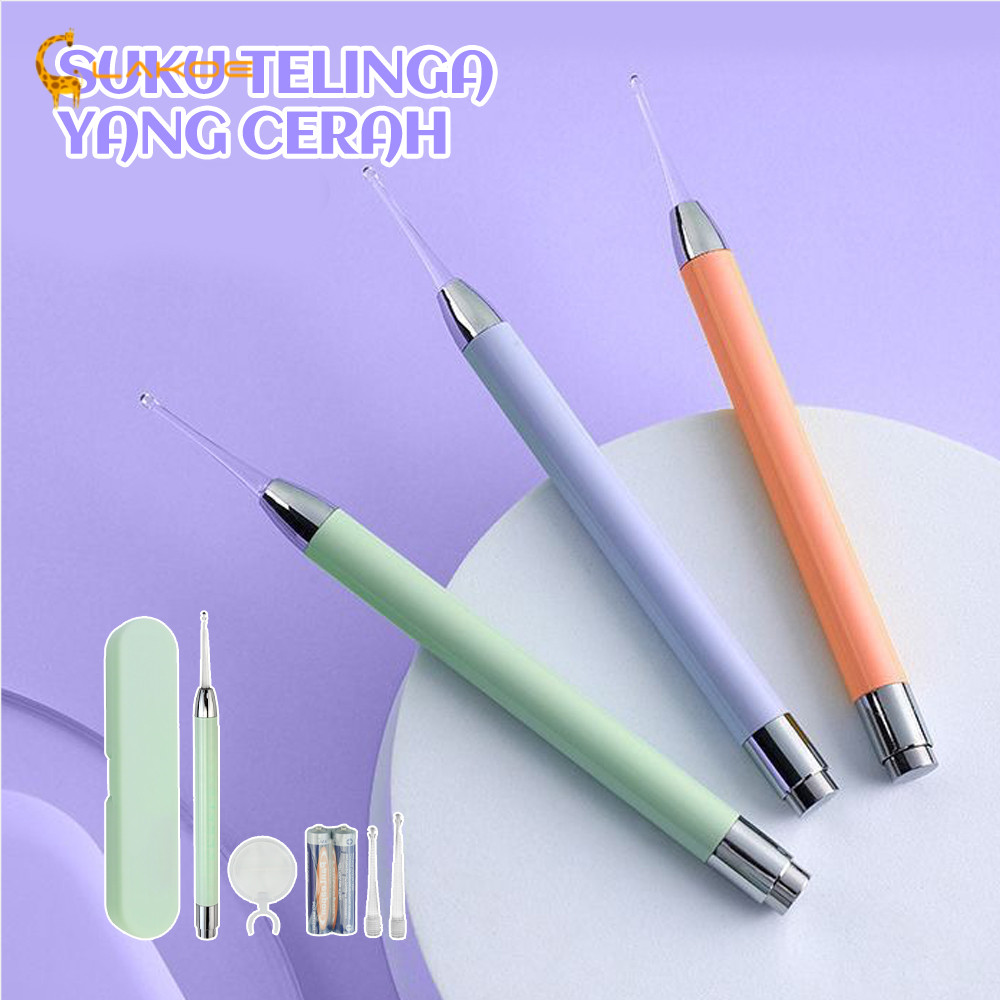 Korek kuping dengan lampu LED lembut yang aman digunakan untuk anak maupun dewasa.