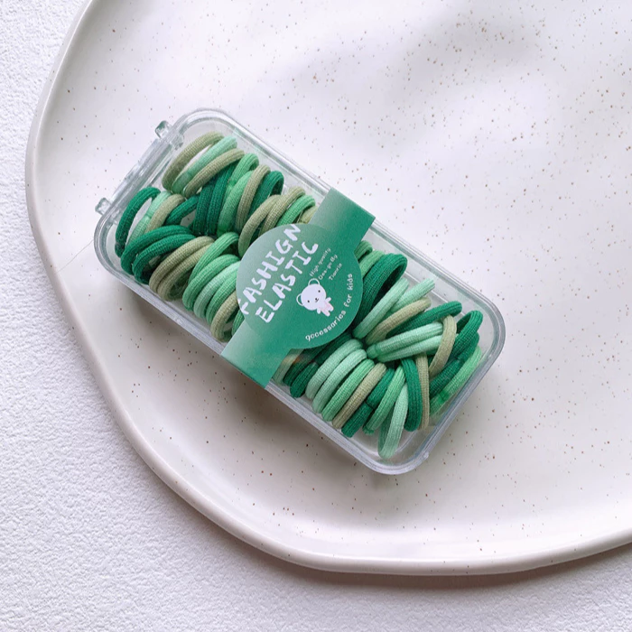 Kotak Ikatan Rambut Gaya Korea Kunciran Rambut Model Polos Warna Warni – Kotak Hijau