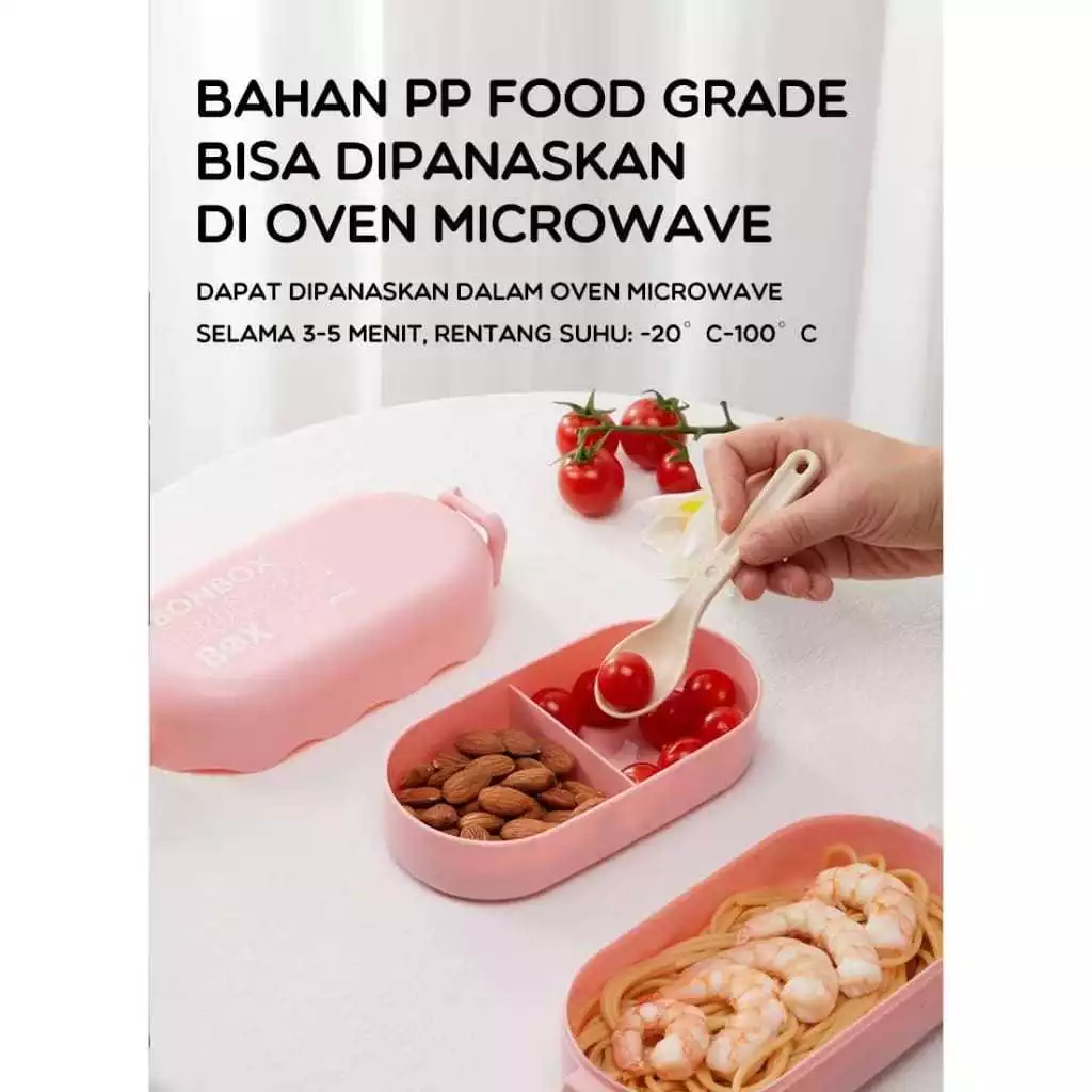 Wadah bekal makanan dengan desain bento 2 tingkat yang praktis dan fungsional. Kapasitas total 850ML memberikan ruang yang cukup untuk menyimpan berbagai jenis makanan dalam satu wadah tanpa tercampur. Desainnya ringkas dan rapi sehingga mudah dibawa ke sekolah, kantor, maupun saat bepergian. Cocok untuk Anda yang ingin membawa bekal sendiri dengan lebih higienis dan teratur.