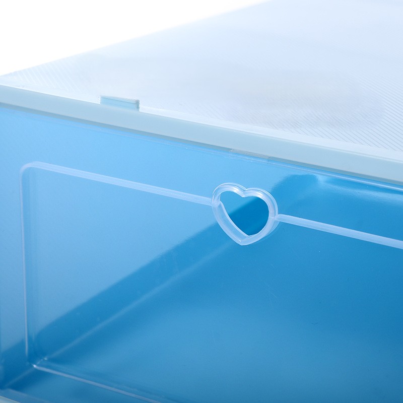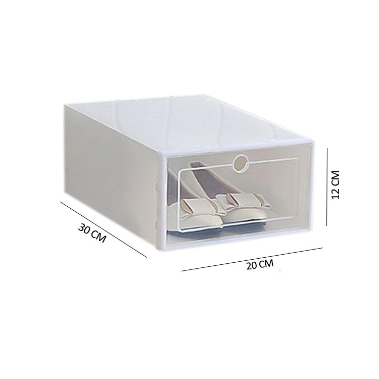 Kotak sepatu transparan tebal dirancang untuk menyimpan sepatu dengan rapi, aman, dan mudah dikenali tanpa perlu membuka kotak. Bahan plastik tebal dan kokoh melindungi sepatu dari debu, kotoran, serta kelembapan. Desain transparan memberikan tampilan bersih dan modern, cocok untuk penyimpanan di rumah, lemari, atau rak sepatu.