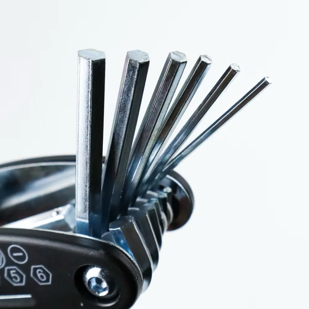 Kunci obeng sepeda 15-in-1 serbaguna ini adalah alat multifungsi yang praktis dan mudah dibawa.