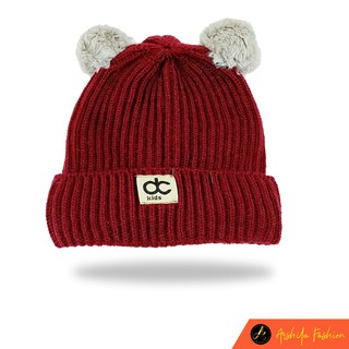 Kupluk Rajut Bayi Model Pompom Premium Unisex POM02 – Merah