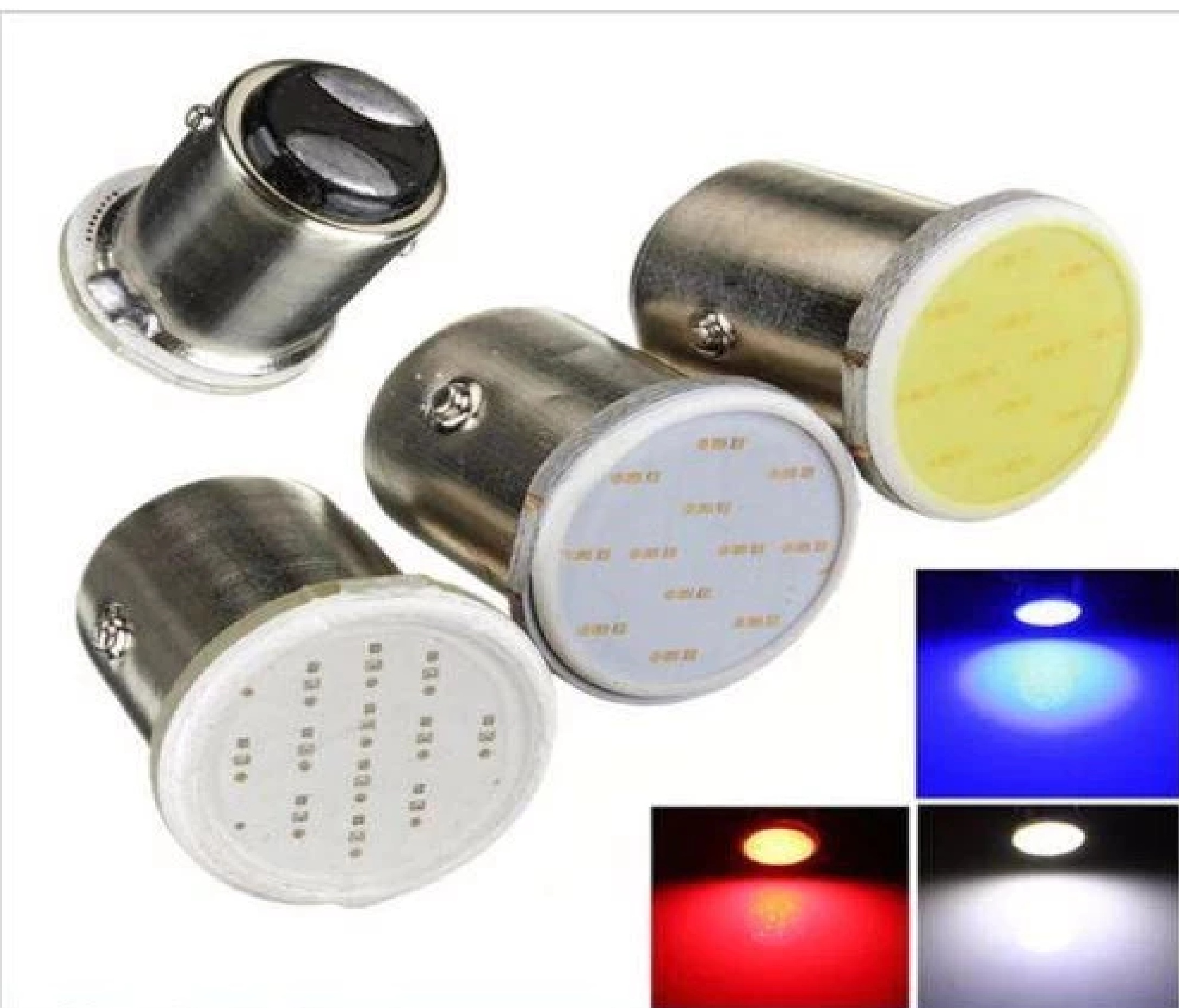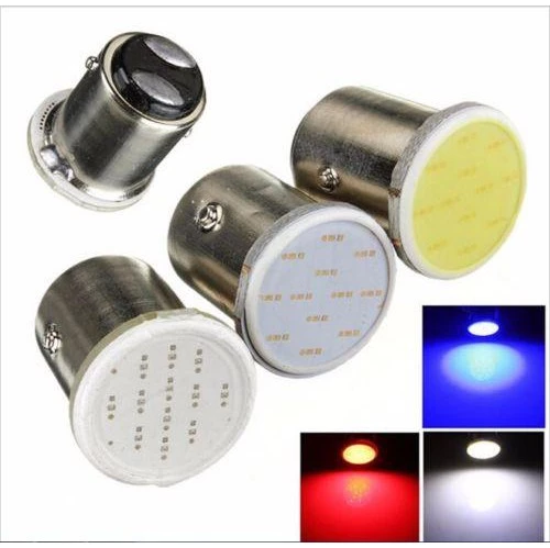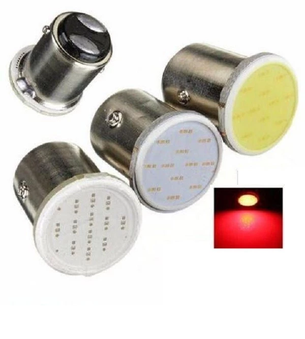 Lampu LED rem motor/mobil dengan fitting bayonet 2 kaki dan teknologi COB Plasma Ceper menghasilkan cahaya merah terang.