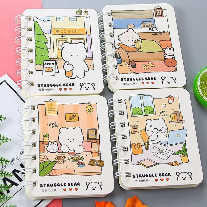 Notebook Ring isi 80 Lembar Motif Karakter Lucu Ukuran A7 – Beruang Kuning