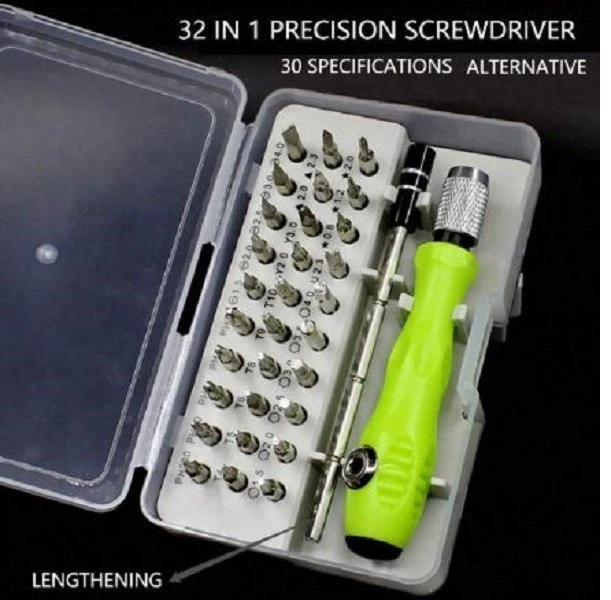 Obeng Set 32 in 1 adalah alat reparasi praktis yang wajib dimiliki di rumah. Dengan 32 jenis mata obeng yang mencakup berbagai ukuran, dari yang besar hingga yang terkecil, set ini sangat cocok untuk memperbaiki peralatan kecil seperti HP, laptop, PC, Android, televisi, DVD player, dan lainnya.
