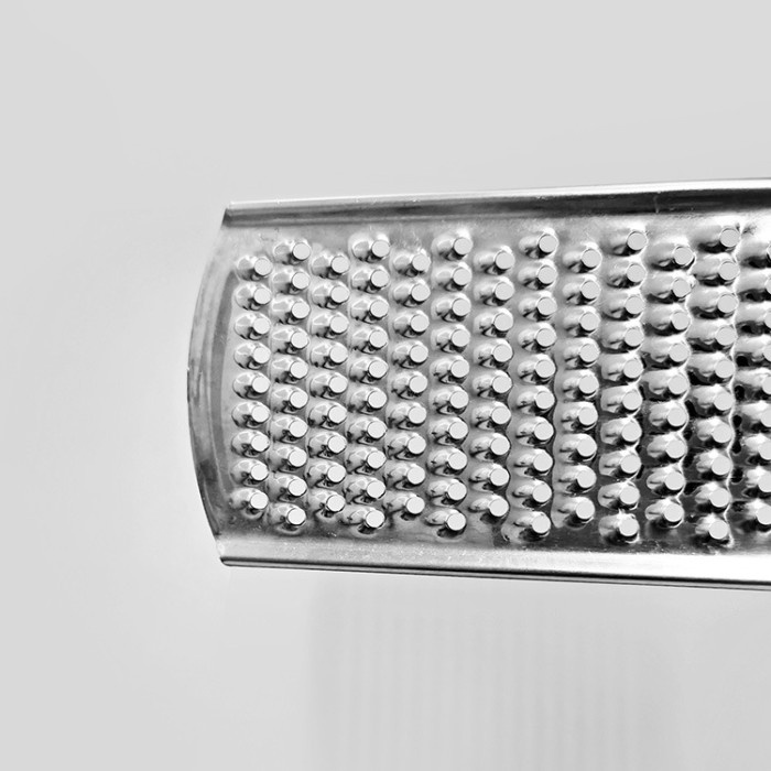 parutan keju berbentuk pipih sehingga menghasilkan keju parutan yang kecil-kecil yang cantik.