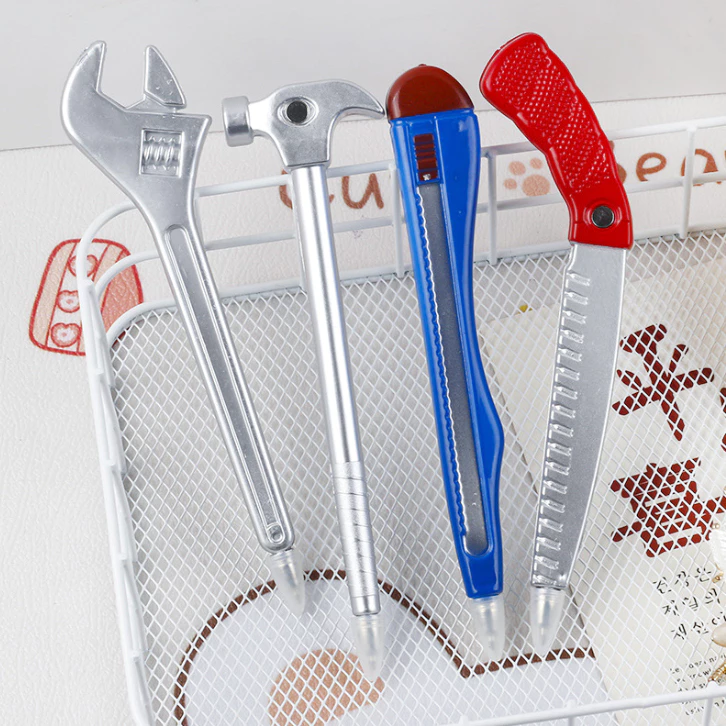 Pulpen dengan desain unik berbentuk obeng dan palu, cocok untuk anak-anak, pelajar, atau sebagai hadiah kreatif.
