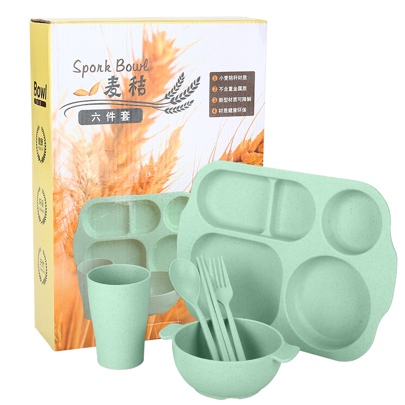 Set Lunch Box Serat Jerami Dengan 5 Sekat Warna Anti Pecah – Hijau
