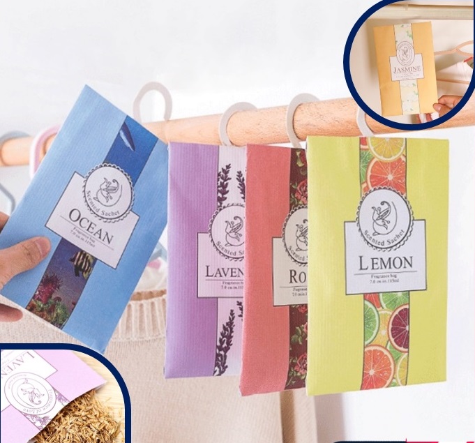 Sachet aromaterapi pengharum ruangan ini menawarkan keharuman alami yang menenangkan. Dengan berbagai pilihan wewangian, sachet ini dirancang untuk mengusir bau apek di berbagai tempat seperti lemari, rak, laci, kamar mandi, tas/koper, atau mobil.