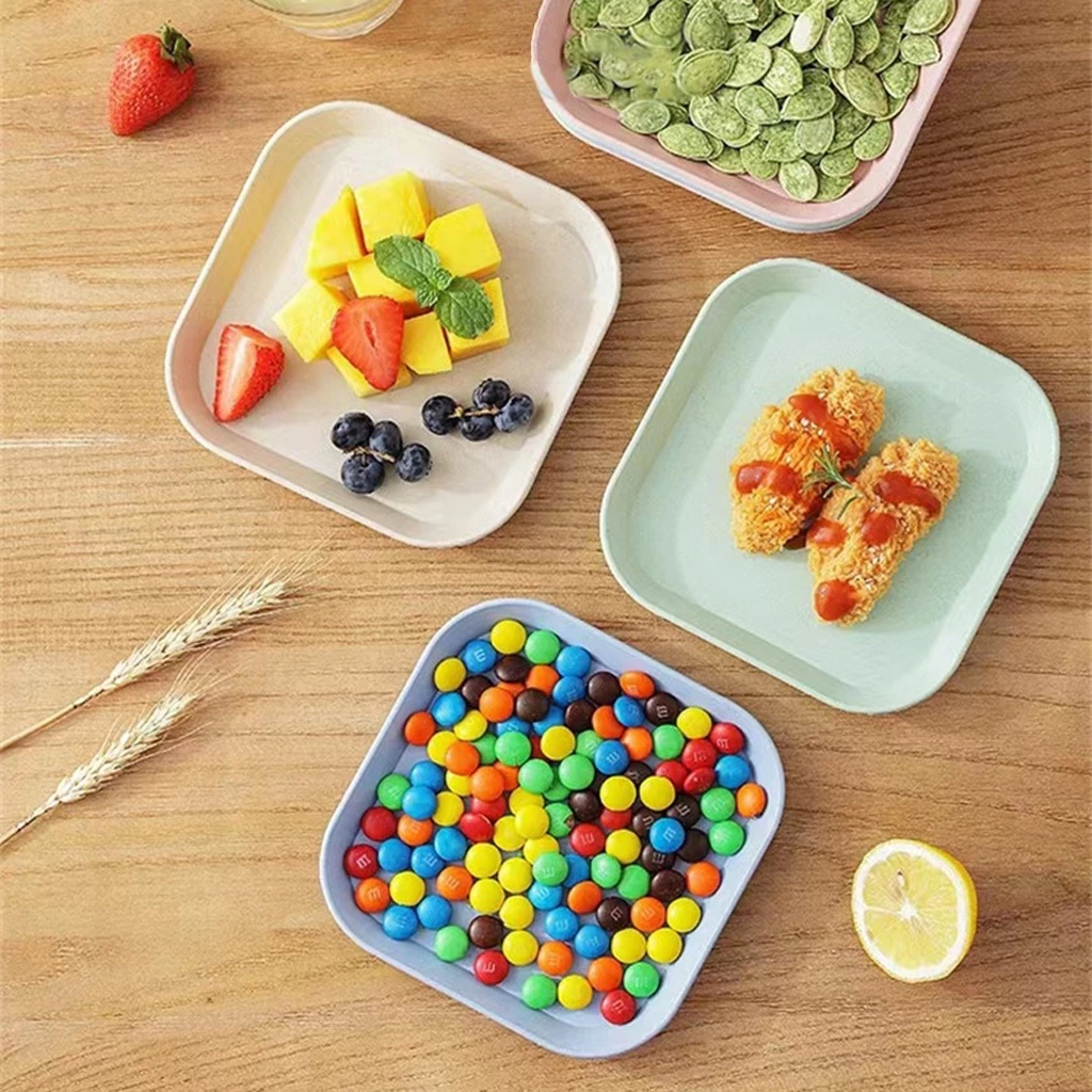 Piring Saji Snack Jerami Persegi Square Wheat Straw Anti Slip 13x13x2cm – Hijau