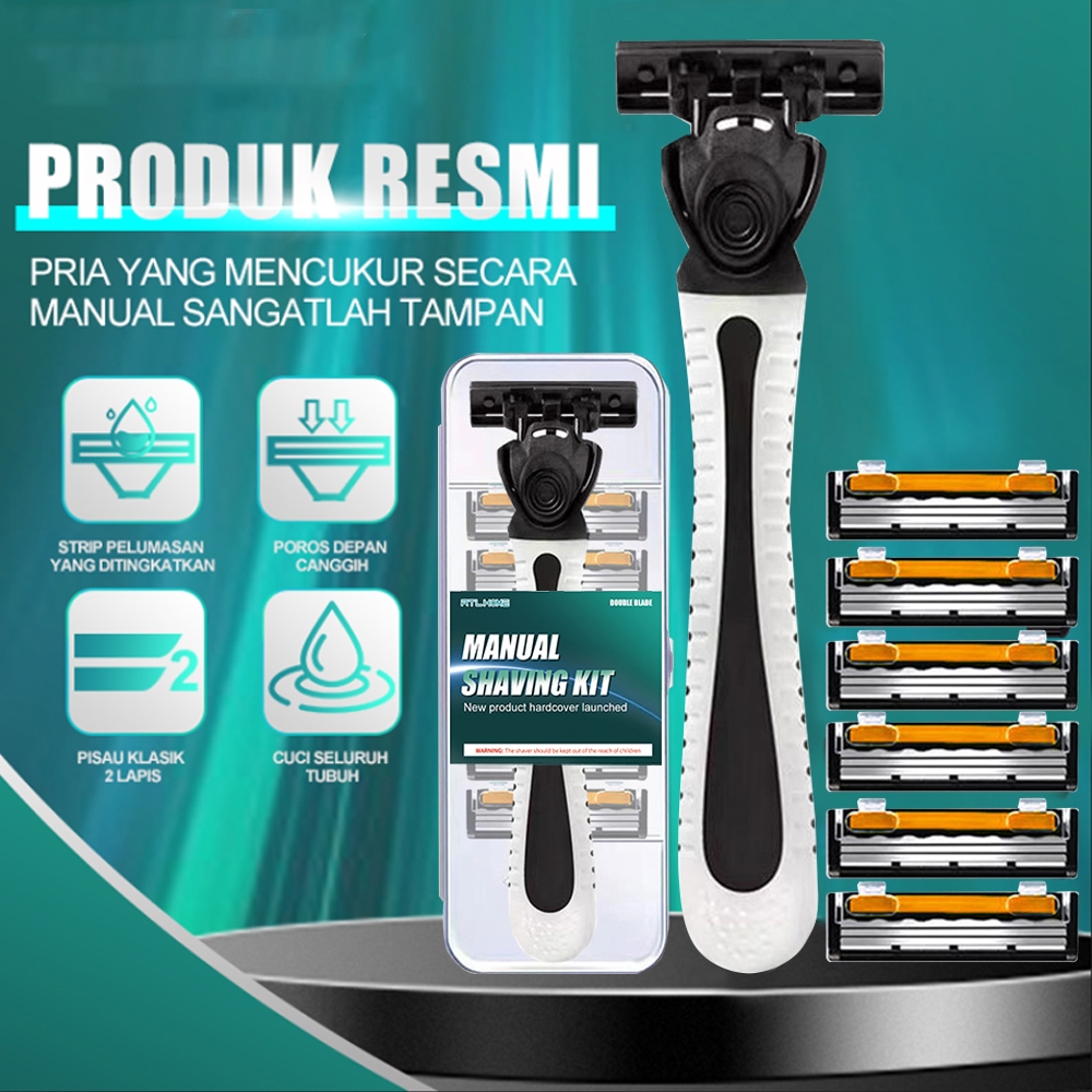 Pisau Alat Cukur Manual Set 6 1 Gagang Anti Slip
