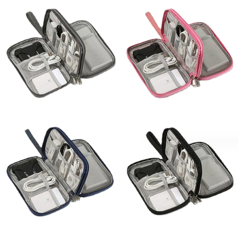 Pouch Dompet Travel Double Layers Mini Storage Organizer Cable Cord – Pink