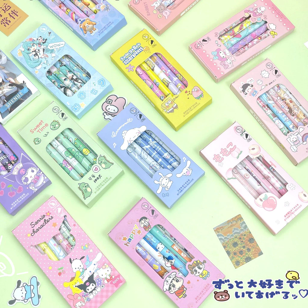 Pulpen Gel Mekanik Karakter Lucu 6 Pcs Set ini hadir dengan desain motif kawaii yang menggemaskan.