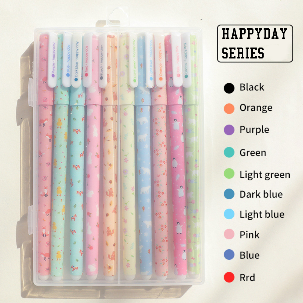 1 Set pulpen gel dengan motif lucu, tersedia dalam 2 varian tinta warna warni (10 Warna) dan tinta hitam)