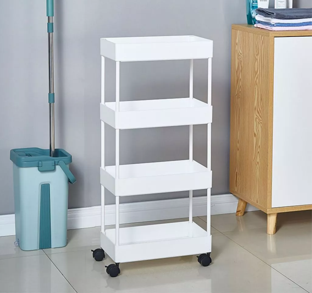 Manfaatkan roda untuk memindahkan rak dengan mudah tanpa mengangkat.