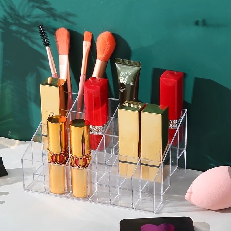 Rak lipstik akrilik transparan 24 slot ini membantu menyusun koleksi lipstik, kutek, dan parfum mini agar lebih rapi di meja rias. Desain berdiri dengan bahan plastik akrilik yang tebal membuat tampilannya elegan sekaligus kokoh untuk pemakaian sehari-hari. Ukurannya compact sehingga hemat tempat namun tetap muat banyak produk kosmetik favorit.