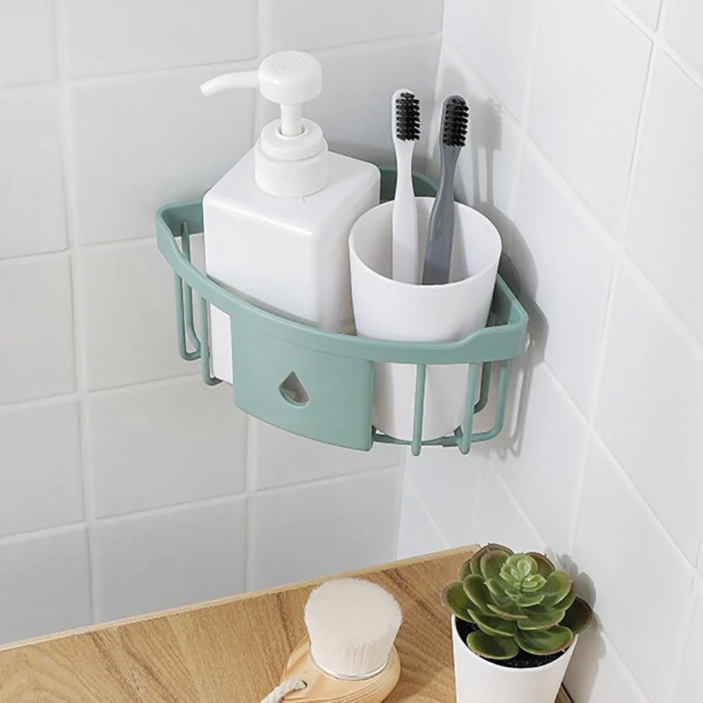 Rak Sudut Siku Tempat Penyimpanan Perlengkapan Kamar Mandi Dapur – HIjau