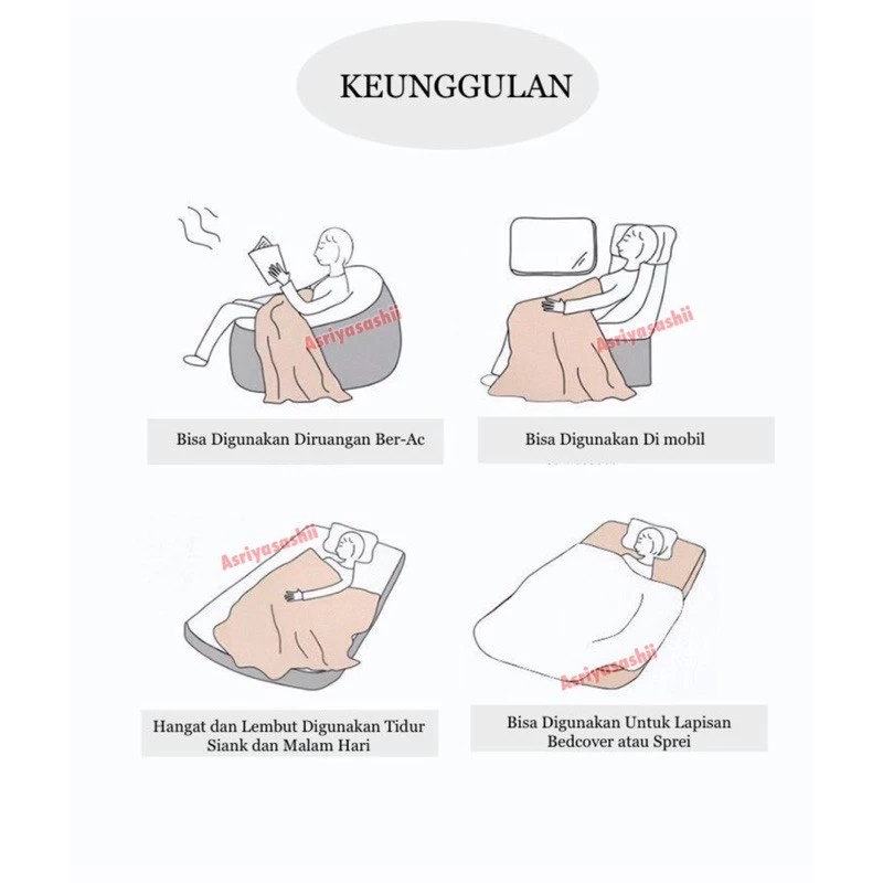 Kegunaan: Selimut tidur, hadiah kado
