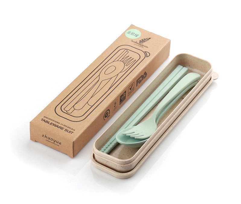 Set Alat Makan Sendok Garpuh Bahan Serat Jerami Gandum – Hijau