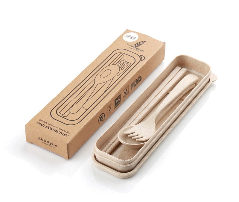 Set Alat Makan Sendok Garpuh Bahan Serat Jerami Gandum – Krem