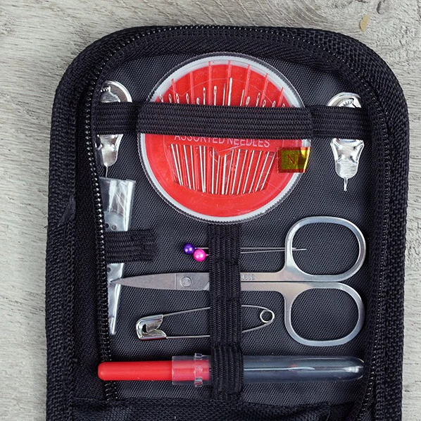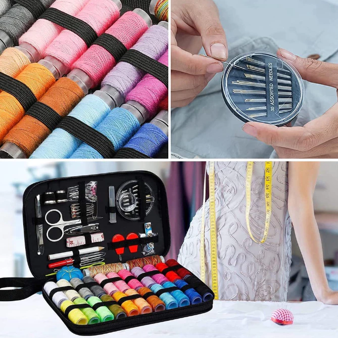Set alat jahit praktis yang dirancang dalam kotak dompet kecil, cocok untuk kebutuhan menjahit sehari-hari maupun saat bepergian.