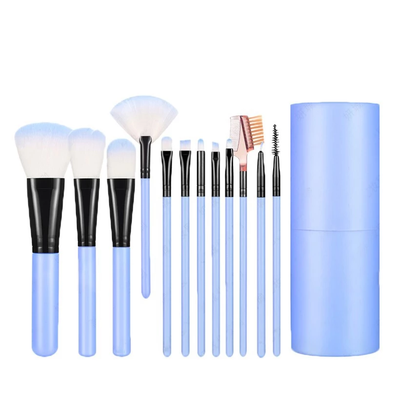 Set Alat Rias Wajah Kuas 12 In 1 Tabung Make Up Tools Brush Isi 12 Pcs – Biru