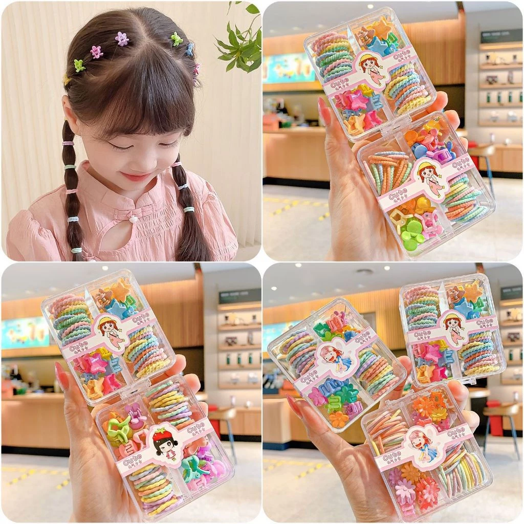 Set Box Ikat Rambut dan Jepit Rambut Anak ini berisi berbagai macam aksesoris rambut dengan karakter dan warna yang lucu, cerah, dan colorful.