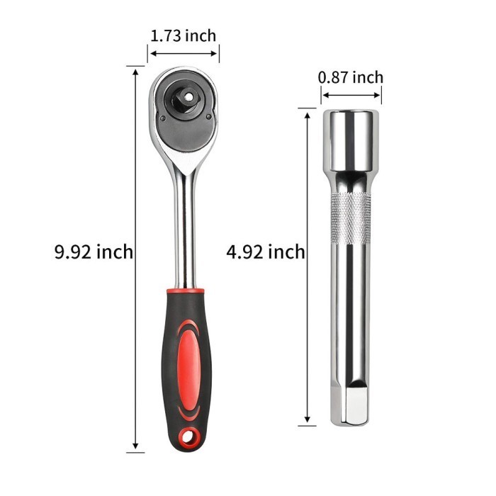 Pasang soket atau kepala batch pada ratchet wrench. Gunakan fitur rilis cepat untuk mengunci dan mengubah soket dengan mudah.