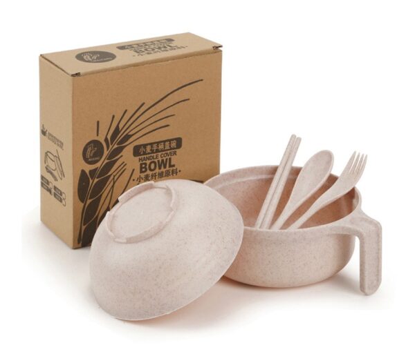 Set Mangkok Mie Lengkap Eco-Friendly Wheat Straw Bowl Set – Pink